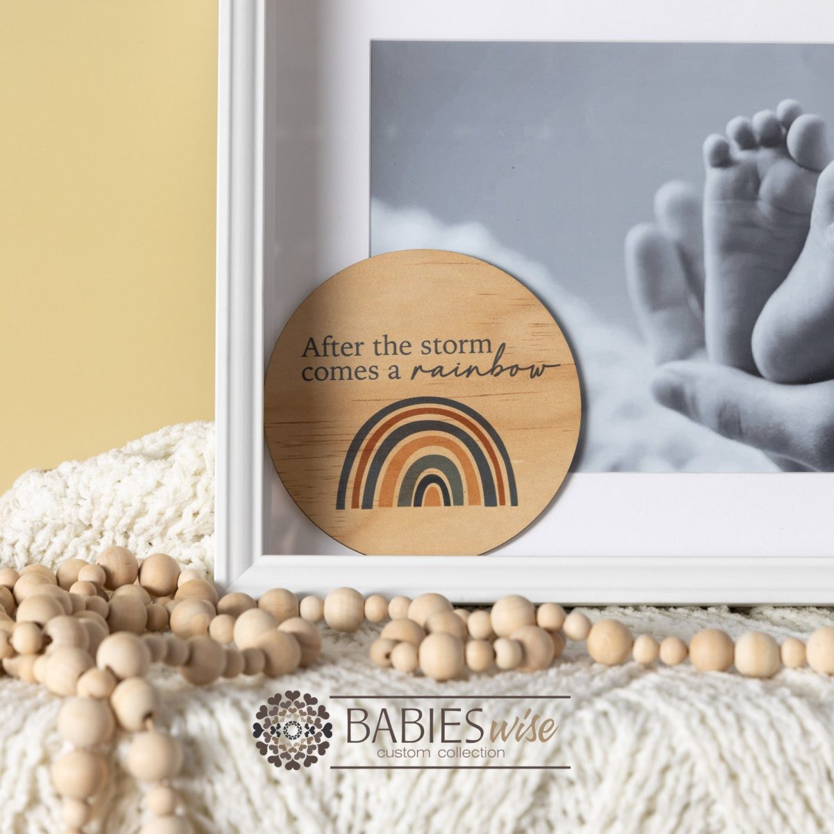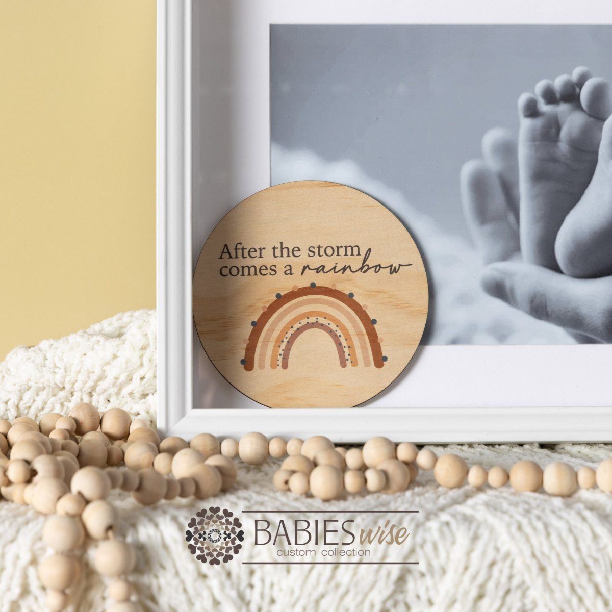 Our “After the Storm Comes a Rainbow” Plaque is a beautiful symbol of hope, healing and new beginings. This meaningful timber keepsake celebrates the arrival of a precious rainbow baby and reminds families that even after the hardest storms, love and joy can shine again.