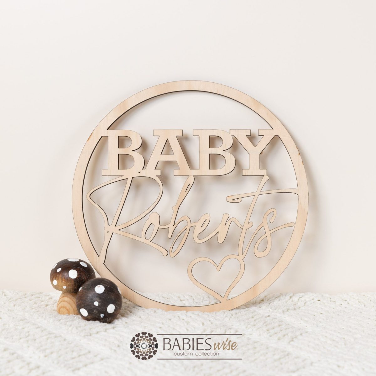 Create a beautiful and meaningful nursery space with our personlised timber Name Hoop. This custom timber nursery wall sign is designed to showcase your baby’s name in a timeless circular hoop style. Crafted from quality timber amd precision laser cut for a clean, layered finish, it makes a stunning statement piece above a cot, change table or nursery shelf. Perfect for newborn annoucements, baby showers or first birthday gifts, this personlised name hoop adds warmth and charm to any nursery decor theme. Each hoop is custom made with your choose name and design, creating a unique keepsake to treasure for years to come.